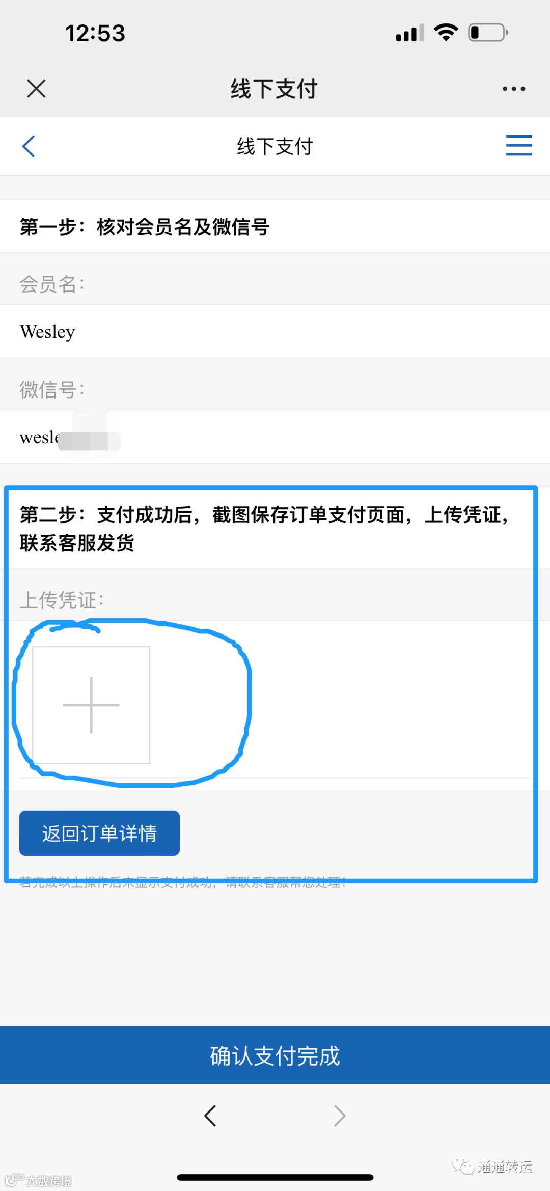 第五步,提交对应的付款截图,点击“确认支付完成”
