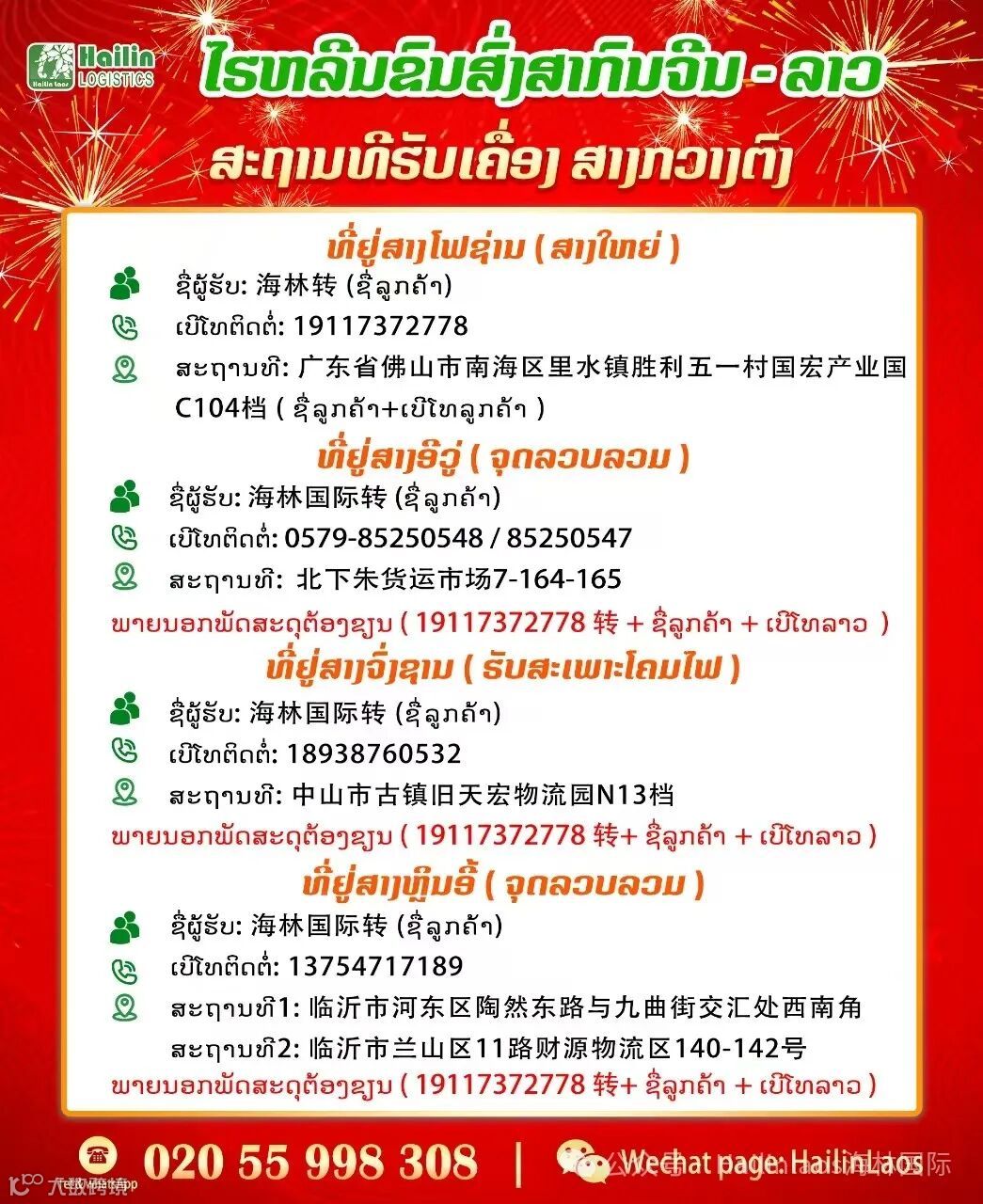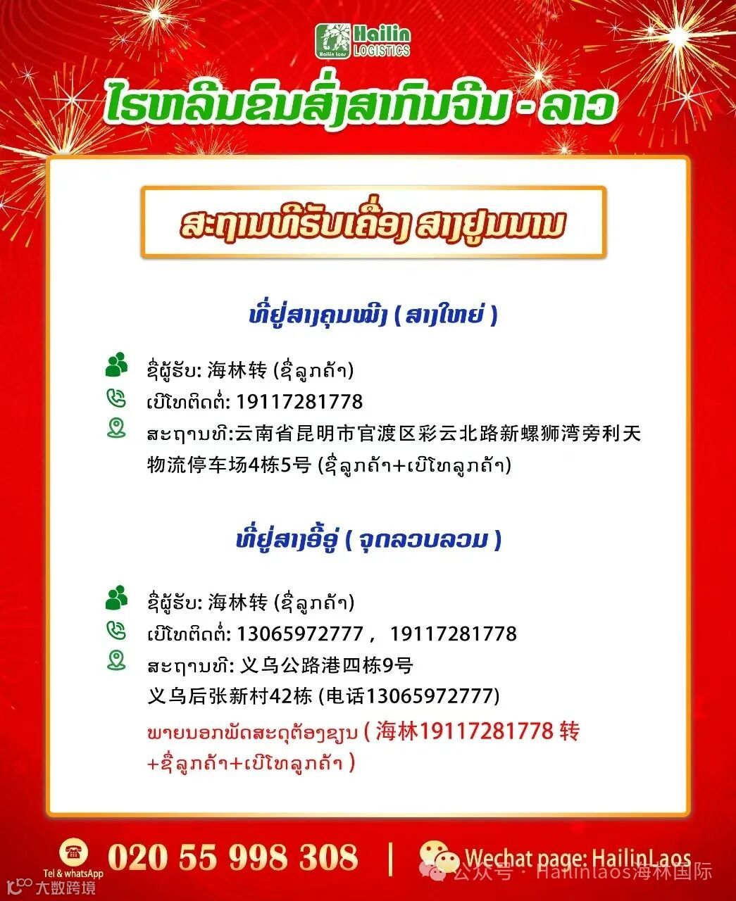 地址:云南省昆明市官渡区彩云北路新螺狮湾旁利天物流停车场,4栋4-5号(客户姓名+老挝电话号码)