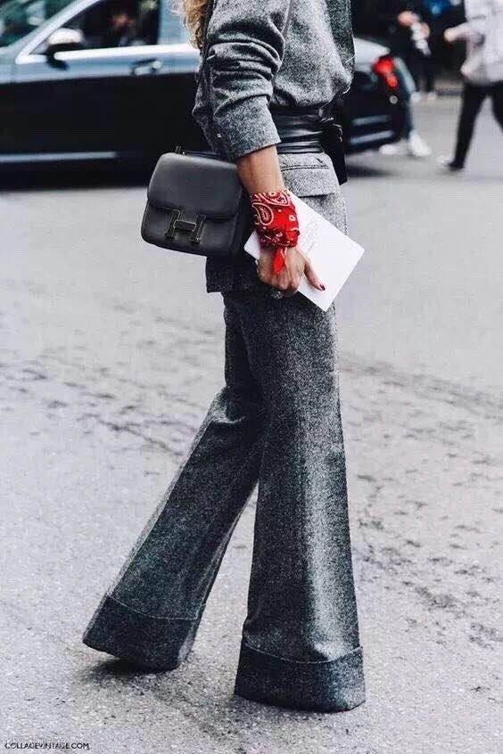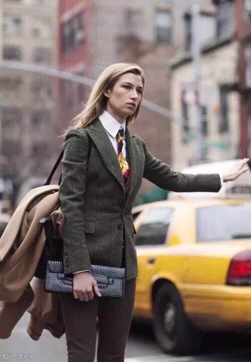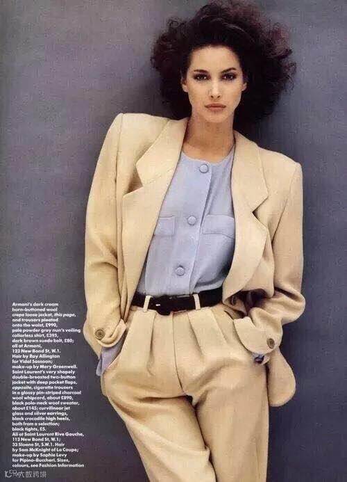 衬衣+垫肩西装和烟管裤的中性OL风,