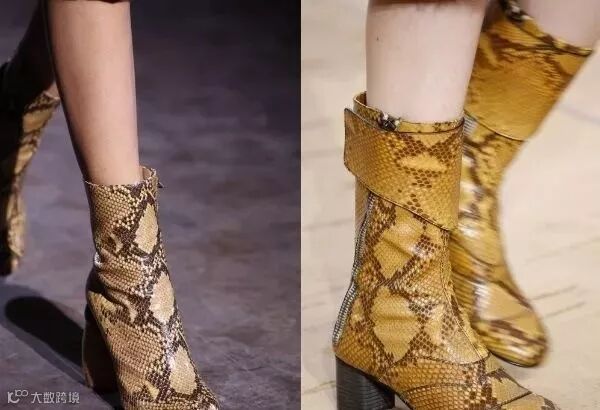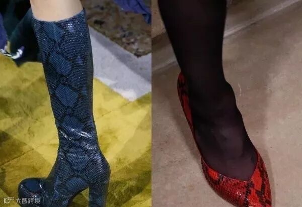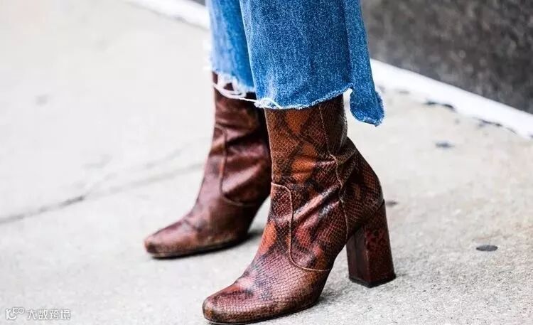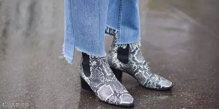 新一季的印花中蛇纹纹理的优势显而易见:涵盖了各种各样的鞋子:从牛仔靴到时尚的细高跟鞋,我们更喜欢看单色。