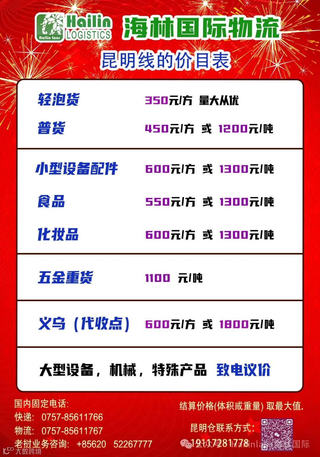 地址:云南省昆明市官渡区彩云北路新螺狮湾旁利天物流停车场,4栋4-5号(客户姓名+老挝电话号码)