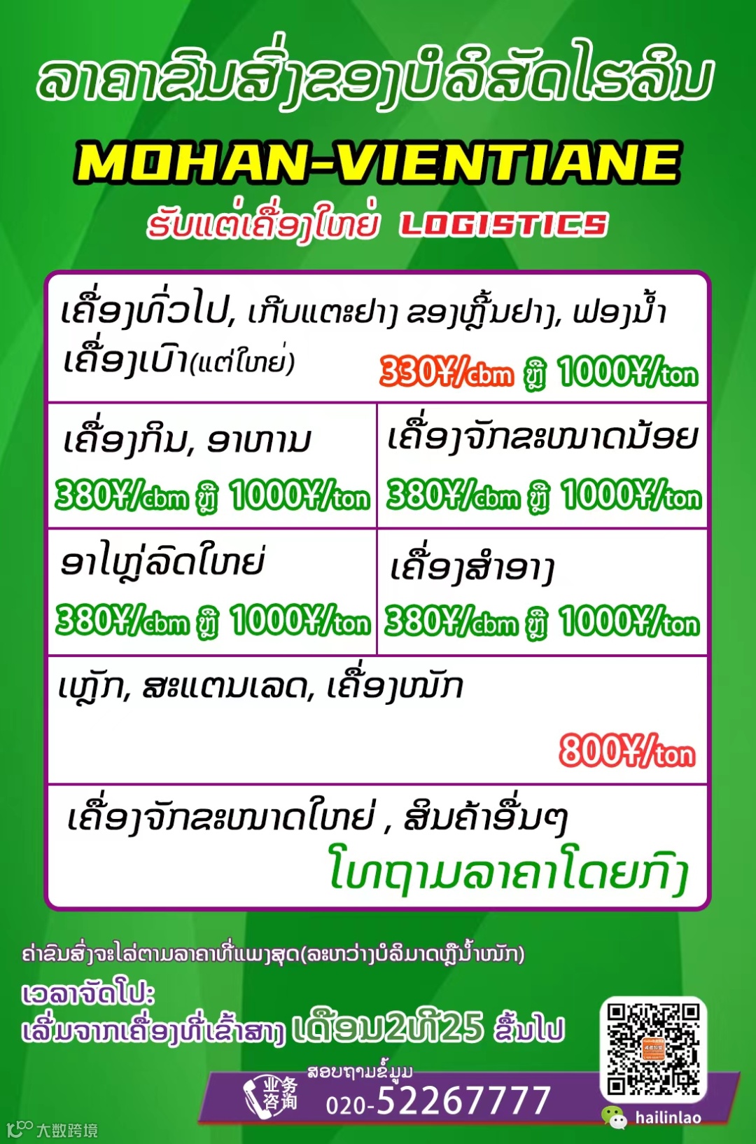 7. ບໍລິການຂົນສົ່ງປົກກະຕິໃຊ້ເວລາຄື 3 – 5 ມື້, ການລ່າຊ້າທີ່ເກີດຈາກດ່ານພາສີກວດເຄື່ອງ ຫລື ສາເຫດຈາກອາກາດ ແລະ ສາເຫດອຶ່ນທີ່ບໍ່ສາມາດກໍານົດໄດ້ ແມ່ນເວລາດັ່ງກ່າວເປັນພຽງຂໍ້ອ້າງອິງ ບໍ່ຖືເປັນມາດຕະຖານຂອງການບໍລິການ.