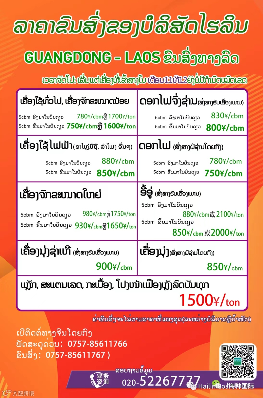 8. ກະລຸນາມາຮັບເຄື່ອງພາຍໃນ 3 ວັນ, ພາຍຫລັງເຄື່ອງໄດ້ມາຮອດຮຽບຮ້ອຍ, ຖ້າກາຍ 3 ວັນ ທາງບໍລິສັດຈະເກັບຄ່າຝາກສາງ. ເຄື່ອງພິເສດ ຫລື ຂໍ້ສະເຫນີພິເສດ ແມ່ນກະລຸນາສອບຖາມທາງ ຝ່າຍບໍລິການລູກຄ້າ, ທາງພວກເຮົາຈະພະຍາຍາມແກ້ໄຂບັນຫາທີ່ທ່ານໄດ້ພົບ ແລະ ບໍລິການດ້ວຍຄວາມວ່ອງໄວ ແລະ ປອດໄພ.