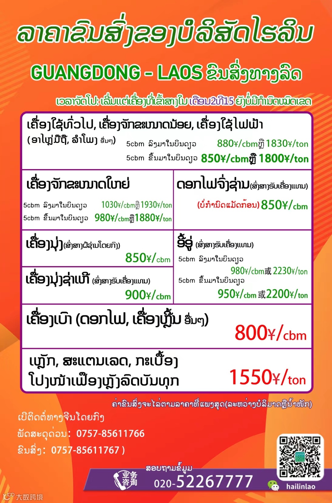 7. ບໍລິການຂົນສົ່ງປົກກະຕິໃຊ້ເວລາຄື 3 – 5 ມື້, ການລ່າຊ້າທີ່ເກີດຈາກດ່ານພາສີກວດເຄື່ອງ ຫລື ສາເຫດຈາກອາກາດ ແລະ ສາເຫດອຶ່ນທີ່ບໍ່ສາມາດກໍານົດໄດ້ ແມ່ນເວລາດັ່ງກ່າວເປັນພຽງຂໍ້ອ້າງອິງ ບໍ່ຖືເປັນມາດຕະຖານຂອງການບໍລິການ.