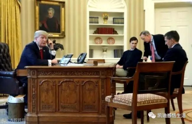 图:特朗普与沙特国王通电话时女婿兼白宫高级顾问库什纳在旁
