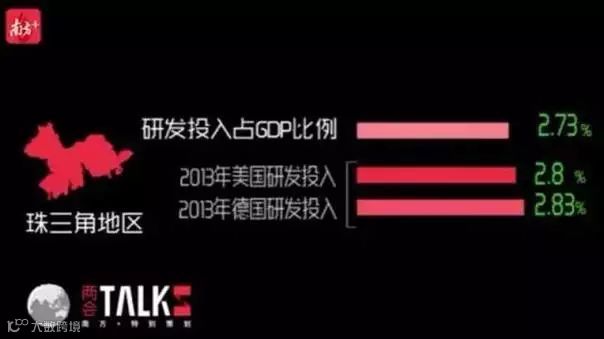 再披露一组权威数据:不说香港、澳门,单说珠三角9市。它们的研发经费支出占GDP比重达2.7%,和美国、德国处于同一水平线。