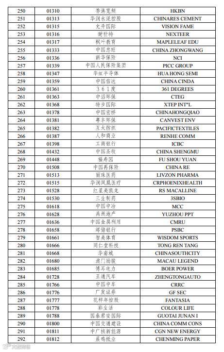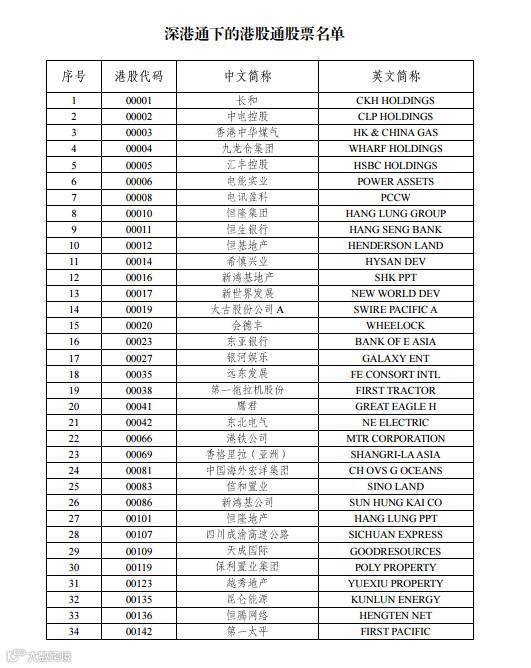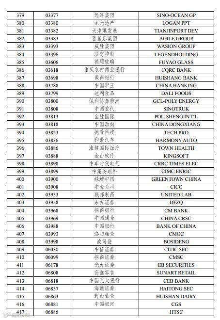 对大陆投资者而言,更关心的417只港股通名单,文章最后附有详细股票名单。↓↓↓↓