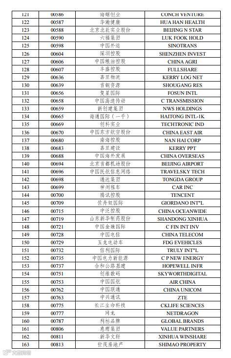 附:深港通下的港股通股票名单