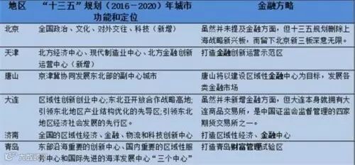 表2:环渤海地区主要城市在十三五规划中定位与金融方略