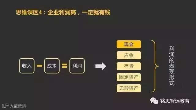 现金只是其中一种表现形式。例如卖出商品但还未收到账款,表现形式即为应收账款。卖出商品得到现金,但立刻转而购买原材料生产存货等等。