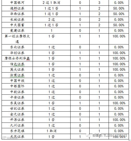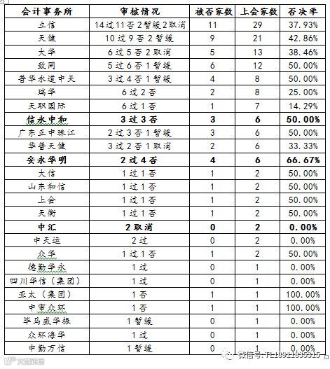会计事务所:表现最好的是瑞华6过2否,否决率是25%。表现最差的是致同5过5否1暂缓否决率50%,普华永道中天3过4否1暂缓50%,信永中和3过3否,安永华明2过4否,否决率是66.67%,还有中汇2取消。