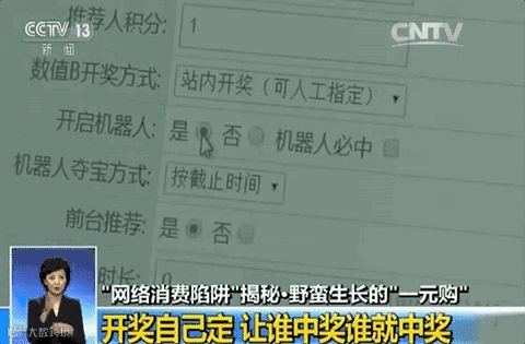 “一元购”平台声称有着严格的开奖方式,然而央视此前早就爆出很多“一元购”平台开奖过程并没有监督,甚至可以控制中奖者和开奖进度:在后台添加虚拟机器人参与开奖过程,通过人为操纵,让这些机器人中奖