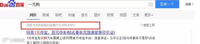在网上搜索“一元购”,相关的搜索结果高达1200万个,有“一元购”业务的知名网站有20多个,而在手机客户端,应用商店中有关“一元购”的APP数量竟然超过300家。