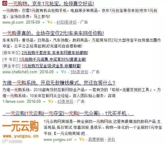 像京东一样,360、网易、百度、迅雷、苏宁等等知名企业都开通了一元购,甚至像去哪网、美团这样的社交团购网站也都做起了“一元购”的买卖。
