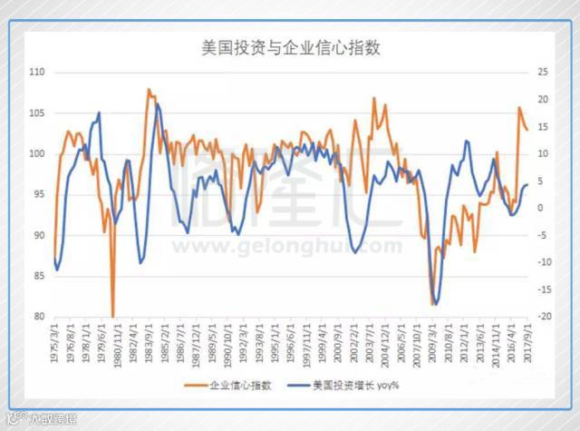 其次,未来5年资本开支的费用化将有助于提振投资意愿,边际有利于高资本开支板块。美国分别在1981年和2001年进行了两次大规模减税,并在2003年、2009年和2010年进行了规模较小的减税。从下图可看出,几乎每次减税政策发布后,都会带来一段时间投资增速上涨,企业信心指数也随之上升的局面。
