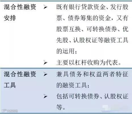 在并购中的运用分为混合性融资安排和混合性融资工具