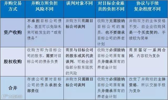 并购交易三种方式的异同点