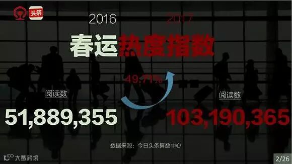 春运是社会,春运是文化,春运缩影国与家。一年一度的春运,承载着国人的情感、目光和脚步。他们在关注着什么,他们的出行有什么规律,哪些城市、哪些人群又和春运关联度最高。中国铁路和今日头条通过对2017年春运铁路购票数据和今日头条客户端阅读数据的分析,告诉你一个缩影国与家的春运。