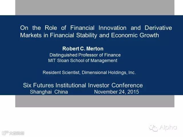 第六届机构投资者年会,诺贝尔奖得主罗伯特莫顿博士,演讲全文和完整PPT,"Alpha"首发。欢迎转载!