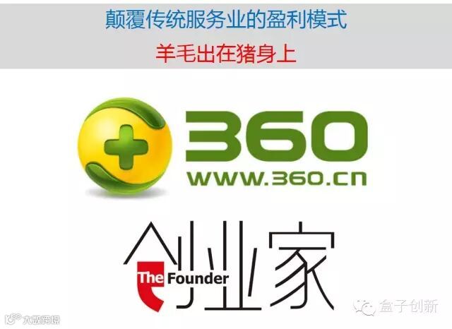 ③颠覆。由于互联网的边际成本趋近于零,免费就成为可能。360用免费将传统杀毒软件全部消灭,并由工具入口和IE浏览器的广告收入获得盈利。形成了羊毛出在猪身上狗买单的商业模式。创业家作为一家杂志社,其成功借鉴这个思想,不是靠卖杂志和广告盈利,而是通过为中小企业提供培训、交流、融资的I黑马社群服务盈利。