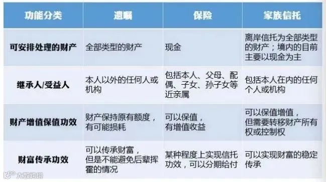 每个家庭资金体量不同,财富传承需求不同,因此要因人而异私人定制财富传承规划。常见的四种财富传承工具是遗嘱、赠予、大额保单、家族信托。这四种方式各有利弊,要根据自己的身价、传承难题,寻找专业机构,量身定做合适的传承方案。