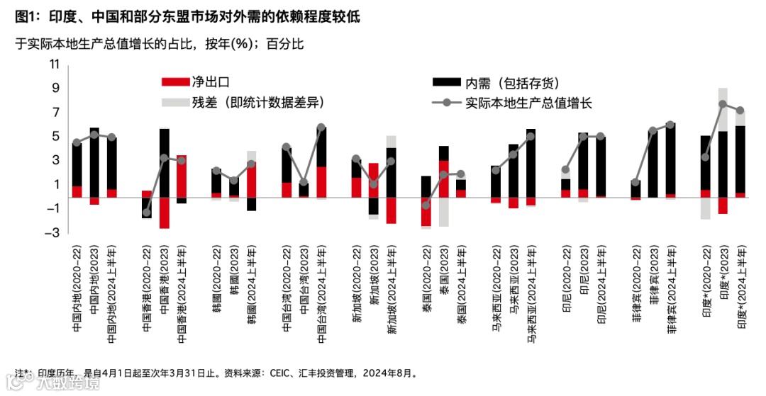 在全球经济复苏周期中,作为内需导向型经济体,中国、印度等国家对外围需求的依赖程度较低,复苏步伐更为稳健。