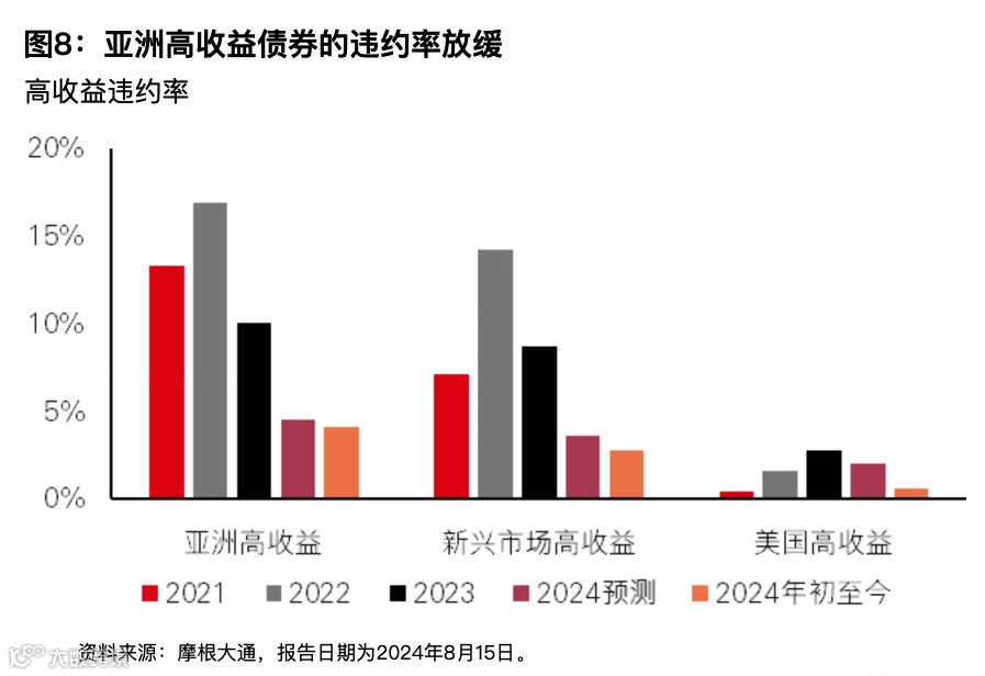 报告最后,梅立中表示,随着亚洲公司偿债能力继续提升,预计高收益债券违约率有望延续回落态势,推升高收益市场修复回稳。