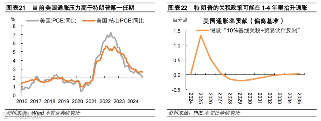 另外,特朗普2.0通胀上行的风险更高,因贸易保护抬升成本,且货币政策独立性可能弱化。当前美国通胀与里根时期更为类似,均从高点明显回落,但仍高于2%目标。但特朗普此前表达的干预货币政策的愿景可能增加货币过早放松引致通胀反复的风险。如果物价不能稳定,美国经济波动风险将上升,国际资本对美元的信心可能打折,这些都会进一步削弱“大循环”的根基。