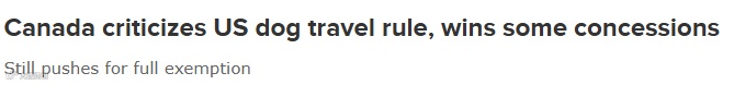 尽管如此,加拿大政府仍然认为目前放宽的规定过于严格,正努力争取让加拿大的犬类完全免除这一规定。