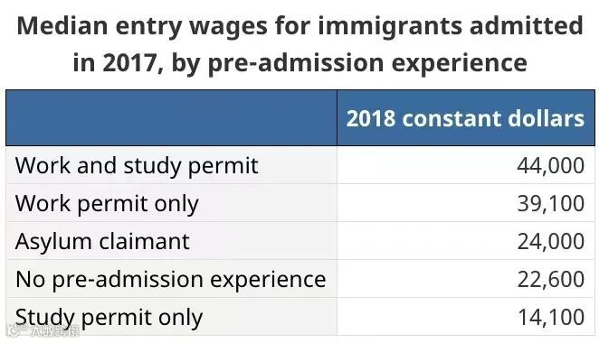 加拿大统计局曾在2018年对不同背景的新移民做过一份收入调查报告。