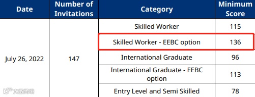 疫情之前只需要100分左右的EEBC技术工人类别,现在想要获邀,起码得拿136分。