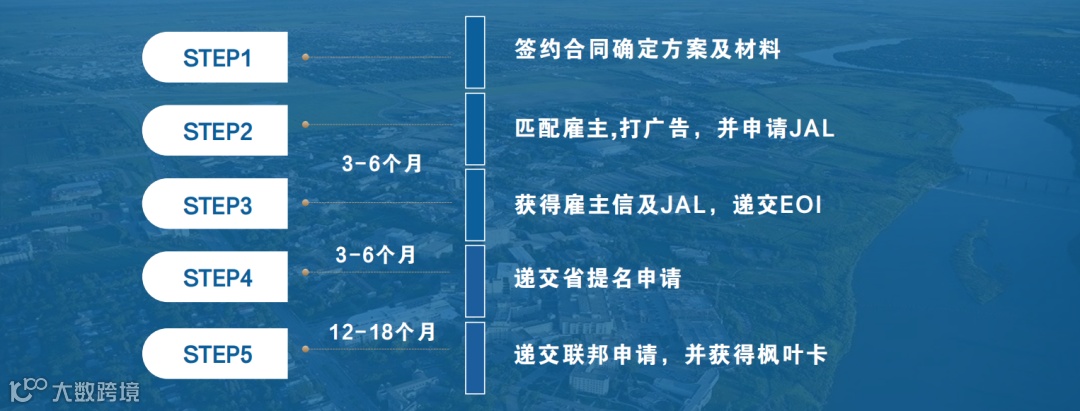 切记,申请人需要在开始省提名前需自行获得工作机会和工作签证。其中,前三步都属于省级别,后两步是联邦级别。