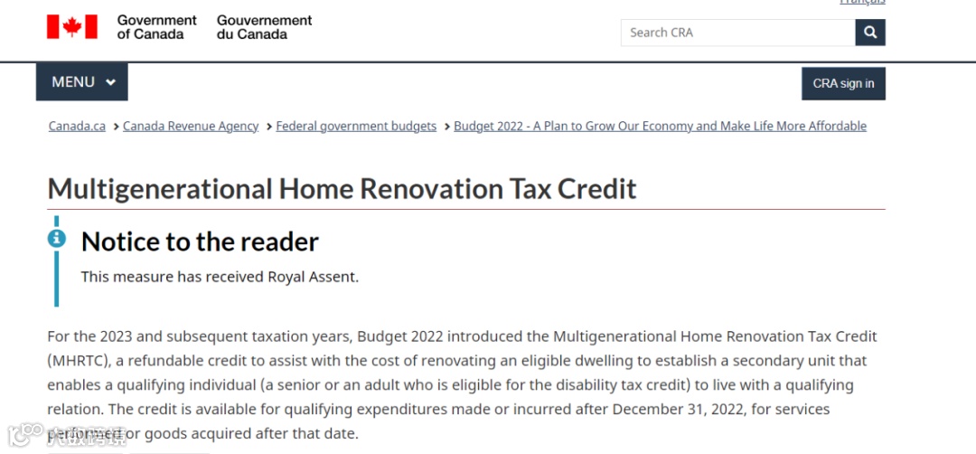 加拿大联邦政府的2023税务改革举措,在“多代家庭装修税收抵免(Multigenerational Home Renovation tax credit,MHRTC)”这块,近日终于披露了更多细节。