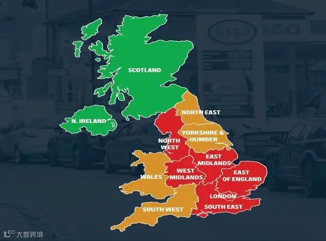 (英国缺油地图,红色部分为极度缺油地区,来源:独立报)