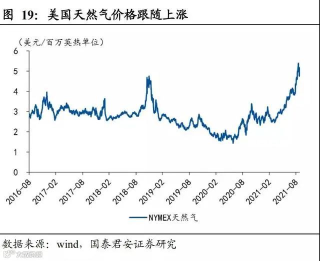 国君分析指出,历史上欧洲的能源CPI与整体CPI的波动基本同步。由于欧洲能源紧缺,当前美国的天然气价格也出现暴涨,尽管美国在页岩气的支撑下,基本可以实现内部的供需平衡。总体看,能源危机的冲击将导致全球通胀压力加大。