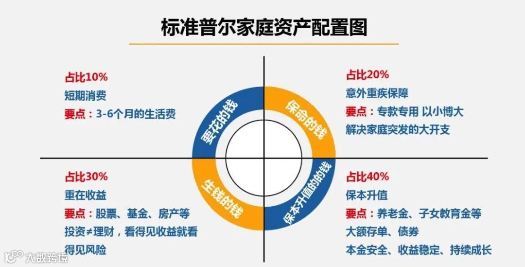 梳理家庭的经济情况,分配合理的预算保费,且要考虑未来的收入状况。家庭盈余的分配参考如下: