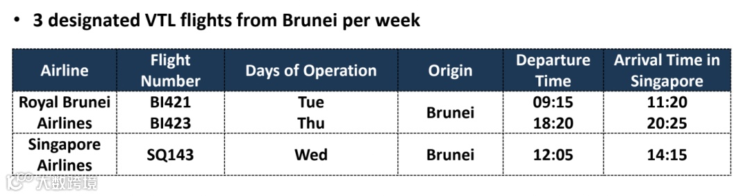 另外新航和文莱皇家航空也有给VTL旅客提纲专门往返的航班