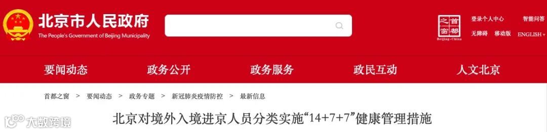 北京口岸入境人员在14天集中隔离期满后,继续开展7天居家或集中隔离,期满后再进行7天健康监测;