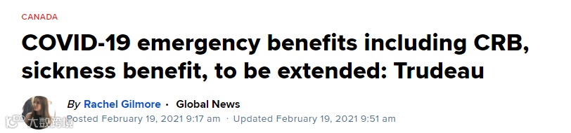 加拿大复苏补助(Canada Recovery Benefit, CRB)延长12周到38周;