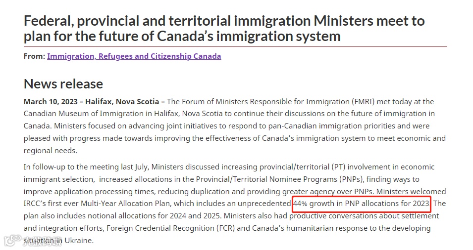 本次会议中提到,将增加44%省提名配额。同时会考虑如何继续推进联邦移民部在移民目标和区域经济移民方面的合作,包括省提名和大西洋移民计划(AIP)等关键项目。