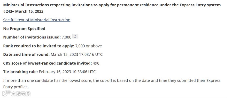 本次筛选最低分数为490分,共有7,000名申请人获得邀请(ITA)。据悉,本次为加拿大全类别筛选首次邀请如此多的申请人。
