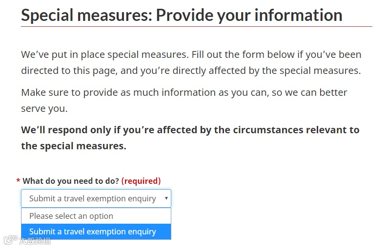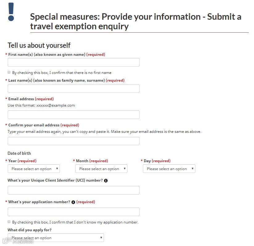 选择“递交旅行豁免查询”后,会出现下述的表格页面: