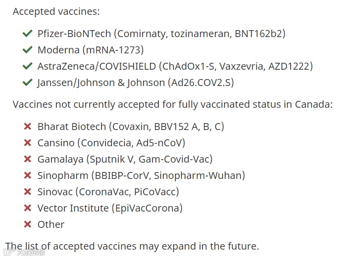 接种其他疫苗的小伙伴也不必灰心,加拿大政府也补充了,说未来可能会将更多品牌疫苗纳入到接纳范围之内,如科兴、国药等。