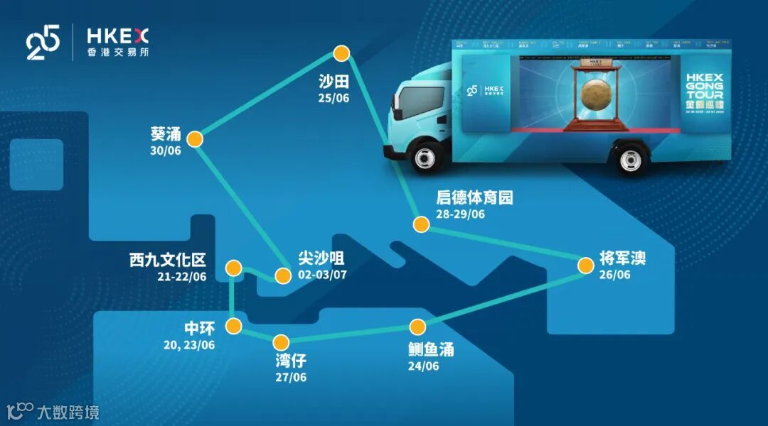 作为香港交易所25周年志庆活动的一部分,香港交易所首次举办"金锣巡礼",从今天起,香港交易所标志性的金锣将在香港各区巡游两星期。