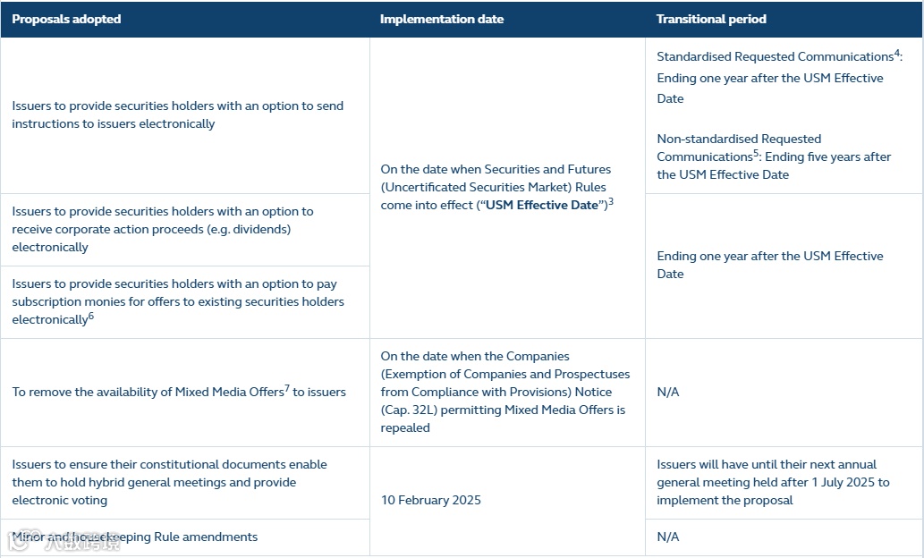 “The reforms and implementation timeline are designed to provide issuers with flexibility, so they can comply in a manner, and at a time, that best suit their individual circumstances. We believe this approach enables the market, as a whole, to enjoy the benefits of the reforms, while limiting the burden on issuers and their agents, such as share registrars,” Ms Ng added.