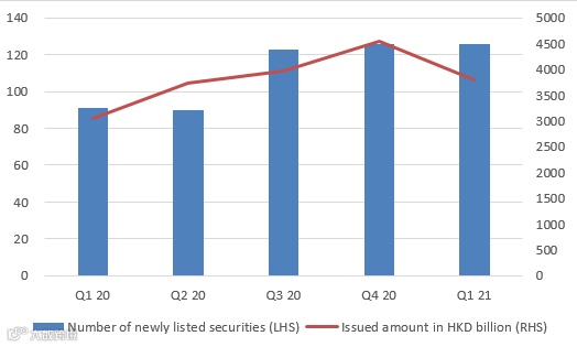 In March alone, HKEX welcomed 38 bonds to its market, raising more than HK$90.5 billion, up 35.7% and 8.8% from same period last year respectively.