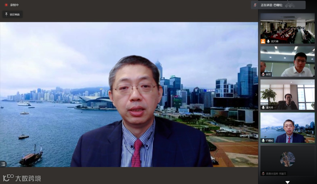 由中国银行业协会主办、香港交易所协办的香港资本市场公开课今天通过线上线下同步方式顺利举行。是次活动吸引内地逾35家银行及部分非银行金融机构的代表参与, 中国银行业协会专职副会长潘光伟、副秘书长张亮出席并收看了课程直播。会上,香港交易所首席中国经济学家巴曙松教授以 "香港资本市场创新与内地银行财富管理发展"发表主旨演讲,并与中国银行业协会及香港交易所的嘉宾和参会人士在互动环节中就银行财富管理业务发展及生态建设进行交流。