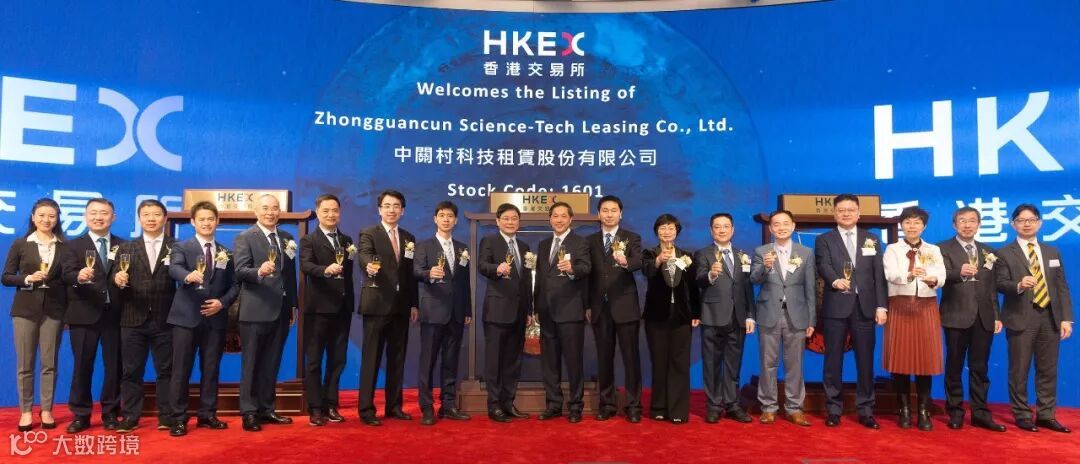 Zhongguancun Science-Tech Leasing Co., Ltd. (1601) listed on the Main Board. The company provides financial leasing services to technology and new economy companies.