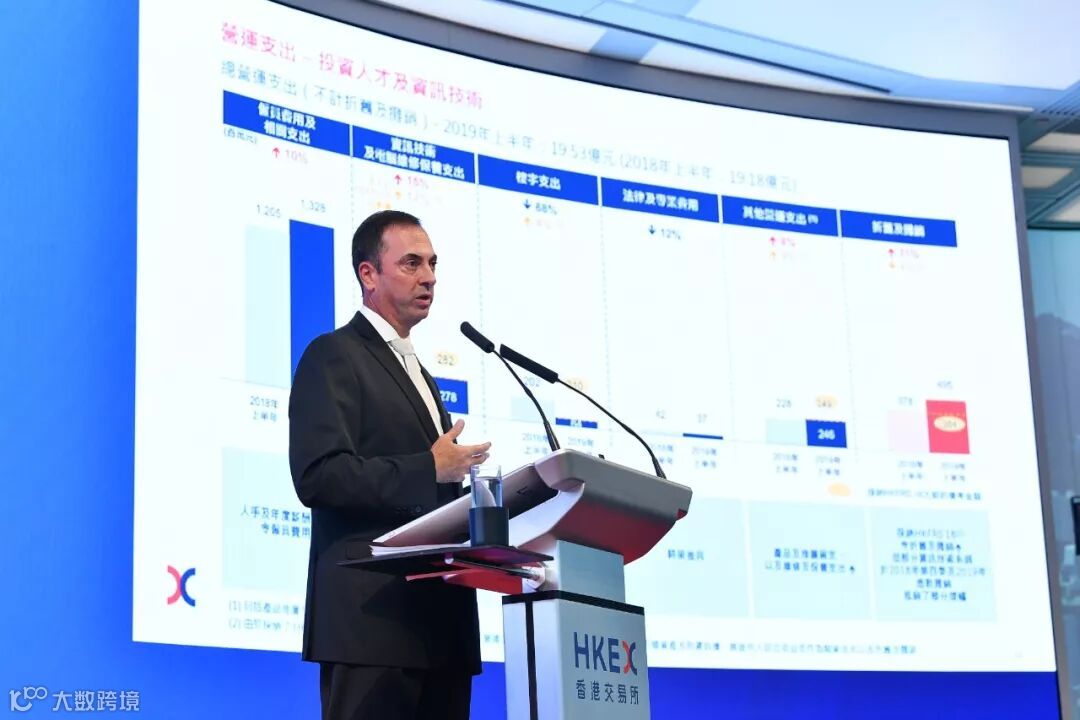 HKEX Chief Executive Charles Li and Group Chief Financial Officer John Killian presented the bourse operator's 2019 interim results at HKEX Connect Hall this afternoon, with Li updating the audience on HKEX's strategic plan at a briefing for reporters and analysts.