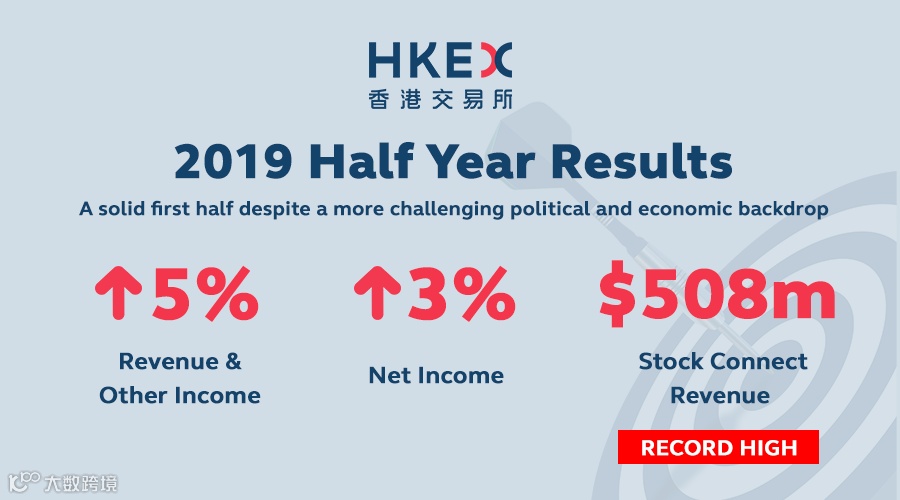 "HKEX had a solid first half in 2019 despite a more challenging political and economic backdrop. Record Stock Connect revenue, a robust IPO pipeline and good returns from investment income offset some macro-driven softness in Cash Market volumes. We were also pleased to see encouraging performances from Bond Connect and our Derivatives Market. We continue to focus on executing our 3-year strategic plan, maintaining good cost discipline and capturing further growth opportunities," Li said.
